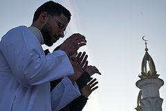 «Вместо воды, которая дефицитна в космосе, используется символическое омовение песком, землей или камнем, который упаковывается в специальный контейнер, — такой обряд называется таяммум. Важно, что после омовения сухим способом нужно находиться лицом к Каабе. Если из-за регулярного движения орбиты это затруднительно, разрешено обращаться в сторону Земли, а при невозможности — в любом направлении, но с внутренним намерением обращения в сторону Каабы», — объяснили в пресс-службе.