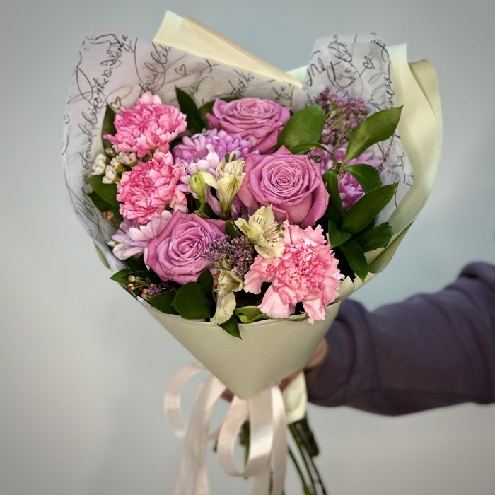 Сборный букет позволяет объединить несколько мягких оттенков без перегрузки формы. Легкое сочетание двух-трех видов цветов делает композицию живой, но не чрезмерной. При необходимости можно купить сборный букет с нейтральной палитрой и аккуратной упаковкой. Такой вариант выглядит продуманно и современно.
