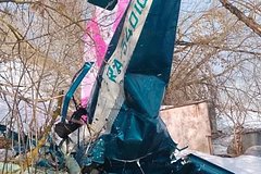 В сети также появилось фото с места происшествия. На снимке видно, что борт упал в заросли деревьев носом вниз. В результате передняя часть воздушного судна оказалась сильно повреждена.