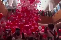 Толчея возникла в холле торгово-развлекательного центра «Планета» во время раздачи подарков ко Дню всех влюбленных. В ходе мероприятия на посетителей должна была упасть связка воздушных шаров в форме огромного сердца, в двадцати из которых находились подарочные сертификаты. Как только сверху посыпались шары, образовалось столпотворение — сначала в зале, а потом и на эскалаторе.