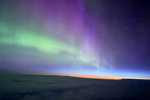 Пилот Олег Приходько из Уфы снял северное сияние на рассвете во время рейса