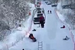 Подъемник резко остановился посреди 1100-метрового подъема в гору в спортивном парке Степаново. Причина поломки — неисправность выхода троса из ролика подъемника. Спасатели эвакуировали людей с помощью лестницы.