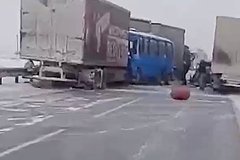 По предварительным данным, среди пострадавших оказались взрослые и дети. Причиной столкновения автомобилей стал гололед. Очевидцы аварии поделились, что сейчас дорога заблокирована — пассажирский автобус и легковушка смяты фурами.