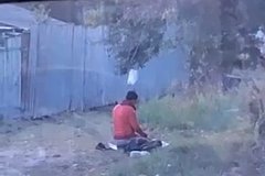 Она опубликовала видео, на котором мужчина в красной кофте сидит на земле в позе молитвы. В это время слышен звук запущенного двигателя.