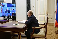 Неизвестный абонент позвонил во время совещания президента России Владимира Путина с членами правительства. Видеоконференция опубликована на сайте Кремля.